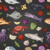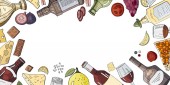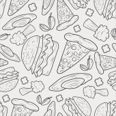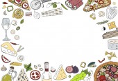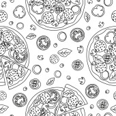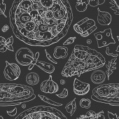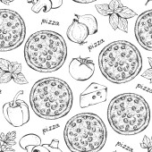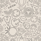 Wzór z pizza i warzywa na jasnym tle. Wektor wzór z kuchni włoskiej