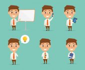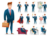 Biznesmen charakter w pracy z gadżet.