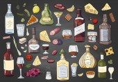 Wzór z rocznika ręka butelek alkoholu ciągnione i gla