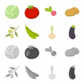 Różnego rodzaju warzywa kreskówki, ikony Konspekt w kolekcja zestaw do projektowania. Warzywa i witamin symbol web czas ilustracja wektorowa.