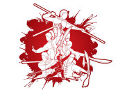 Zdjęcie "Kung Fu fighter z broni, sztuk akcji stanowić wektor graficzny kreskówka." może być wykorzystywane do celów osobistych i komercyjnych zgodnie z warunkami zakupionej licencji Royalty-free. Obraz jest dostępny do pobrania w jakości wysokiej rozdzielczości do 5760x3840.