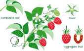 Zdjęcie "Części roślin. Morfologia malinowy krzew z jagód, zielone liście, system korzeniowy i tytuły" może być wykorzystywane do celów osobistych i komercyjnych zgodnie z warunkami zakupionej licencji Royalty-free. Obraz jest dostępny do pobrania w jakości wysokiej rozdzielczości do 5760x3840.
