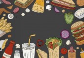 Tło kolekcji Vintage fast food. Szybka ręka wektor