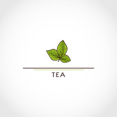 Nagłówka słowo herbata i zielony liść symbol ikonę