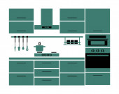 zestaw mebli kuchennych. ilustracja wektorowa na beżowym tle