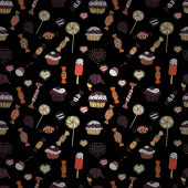 Babeczki bezproblemowa wzór z akwarela na fioletowe, białe i czarne tło. Doodle ilustracja z ciasta. Słodycze tło. Ilustracja wektorowa.
