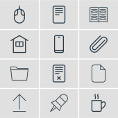 Zdjęcie "Ilustracja wektorowa 9 Artykuły papiernicze ikony stylu linii. Można edytować zestaw zegar, aktówki, rezerwowym i inne elementy ikony." może być wykorzystywane do celów osobistych i komercyjnych zgodnie z warunkami zakupionej licencji Royalty-free. Obraz jest dostępny do pobrania w jakości wysokiej rozdzielczości do 5760x3840.