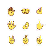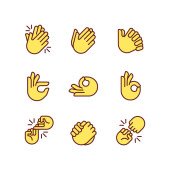 Zdjęcie "Ręką gest emojis kolor zestaw ikon" może być wykorzystywane do celów osobistych i komercyjnych zgodnie z warunkami zakupionej licencji Royalty-free. Obraz jest dostępny do pobrania w jakości wysokiej rozdzielczości do 5760x3840.