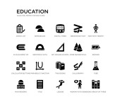 prosty zestaw ikon, takich jak ukończeniu, pełny test tube, otwartej wiadomości e-mail, uczyć, walcowane dyplom, schowek z +, grecki filar, ręcznie dzwon, audiobook, tablet. kolekcja ikony związanym z edukacji. edytowalne