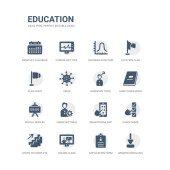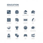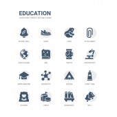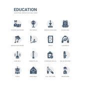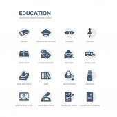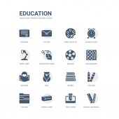 prosty zestaw ikon, takich jak nożyczki, szkło powiększające, klej, wyróżnienia, alfabet, flet, okresowy, pudełko na lunch, dna, wawrzyn wieniec. kolekcja ikony związanym z edukacji. edytowalne 64 x 64 pikseli