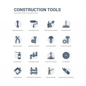 prosty zestaw ikon, takich jak jack płaszczyzny, przyrząd, wybrać topór, pionu, taczek, klin narzędzie, narzędzie pik, młot, scratcher narzędzie, kask. Narzędzia budowlane związanym z ikony