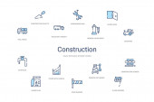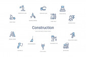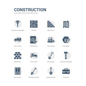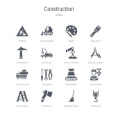 Hak prosty zestaw ikon, takich jak koła pasowego, zamiatanie, miotła, skłonni ax, drabiny, konstrukcje, korek drogowy, trzy narzędzia, ciężarówka z obciążenia, rysunek kompas, derrick z obciążenia. związane z