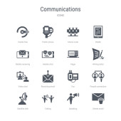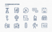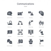 prosty zestaw ikon, takich jak mówienie, rozmowa, satelita, danie, połączenie ludzi, faks, e-mail otrzymującego, czat wideo, pisanie listu, pager, mobilnego czatu. związane z comunation kolekcja ikony. edytowalne