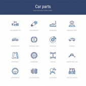 prosty zestaw ikon, takich jak samochód światła awaryjne, reflektorów samochodów, samochodowy, kaptur, róg, hubcap, zapłon, wskaźnik, jack, blokady. kolekcja ikony związanych części. edytowalne 64 x 64 pikseli idealne.