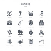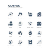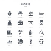 prosty zestaw ikon, takich jak karabinek, latarka, tratwa, rafting, stołówka, thermo, osie, buty, buty, krzesło camp, camp tabeli. związanym z camping kolekcja ikony. edytowalne 64 x 64 pikseli idealne.