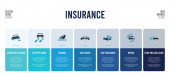 prosty zestaw ikon, takich jak parking awarii, ochrony płatności, przewrócony pojazd, problem elektryczny, przebicie w koło, ubezpieczenie nieruchomości, tył zderzenia, naprawy, ubezpieczenie statków, po stronie