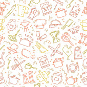 Zdjęcie "Zestaw czterech bezspoinowo desenie na temat kuchni z różnych elementów kuchni w różnych kolorach." może być wykorzystywane do celów osobistych i komercyjnych zgodnie z warunkami zakupionej licencji Royalty-free. Obraz jest dostępny do pobrania w jakości wysokiej rozdzielczości do 5760x3840.