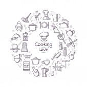 Zestaw czterech bezspoinowo desenie na temat kuchni z różnych elementów kuchni w różnych kolorach.