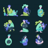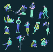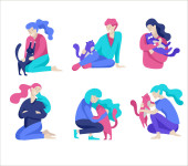 Wektor znaków. Szczęśliwych ludzi z ich zwierzęta, kot miłość ich właścicieli