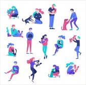 Zdjęcie "Wektor znaków. Szczęśliwych ludzi z ich zwierzęta, kot miłość ich właścicieli" może być wykorzystywane do celów osobistych i komercyjnych zgodnie z warunkami zakupionej licencji Royalty-free. Obraz jest dostępny do pobrania w jakości wysokiej rozdzielczości do 5760x3840.