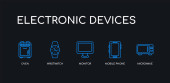 Zestaw 9 ikon wektorowych prostych urządzeń elektronicznych. zawiera elektroniczny, ekspres do, okap, faksu, faks, malakser, ikony pieca i innych. Projekt można edytować infografiki
