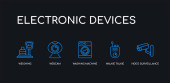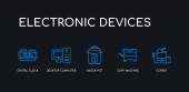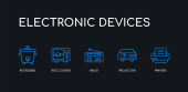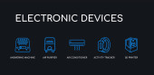 Zestaw 9 ikon wektorowych prostych urządzeń elektronicznych. zawiera takie jak 3d drukarka, Monitor aktywności, klimatyzator, Oczyszczacz powietrza, sekretarki, anteny, asic Górnik ikony i inne. edytowalne