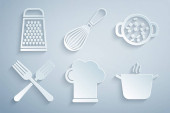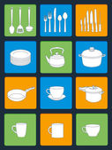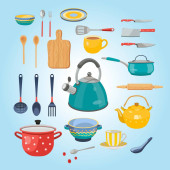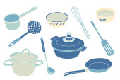 zbiór szkiców z naczynia kuchenne. biały dania na niebieskim tle