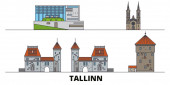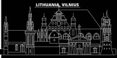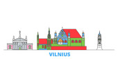 Litwa, Vilnius płaski ilustracja wektorowa zabytki. Litwa, linia Wilna z podróży słynne zabytki, skyline, projektowanie.
