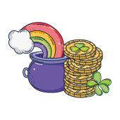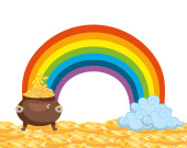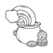 linii kolor złota monety wewnątrz garnka kocioł i tęczy