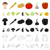 Różnego rodzaju warzywa kreskówki, mono ikony w kolekcja zestaw do projektowania. Warzywa i witamin symbol web czas ilustracja wektorowa.