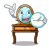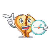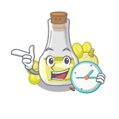 Z olejem sezamowym zegar na białym tle z kreskówki