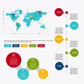 Retro zestaw infografik. Mapa świata i grafika informacyjna