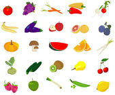 Zestaw zdrowe warzywa, jagody i owoce. Plasterki f