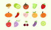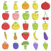 Zestaw kreskówka owoców i warzyw. Wektor płaskie krótsze.