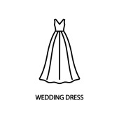 ślub sukienka wektor z kolekcji ślubnej. Cienka linia ślub sukienka konspektu ikona ilustracja wektorowa. Symbol liniowy do użycia w sieci web i aplikacji mobilnych, logo, nośników wydruku.
