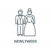 Nowożeńcy wektor z kolekcji ślubnej. Cienka linia nowożeńcy zarys ikona ilustracja wektorowa. Symbol liniowy do użycia w sieci web i aplikacji mobilnych, logo, nośników wydruku.