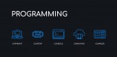 5 kontur skok niebieski Java, js, klawiatura i mysz, Strona docelowa, ikony aplikacji mobilnych z kolekcji programowania na czarnym tle. liniowe cienkie ikony edytowalne liniowo.