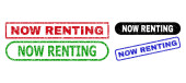 Grunge teraz wynajmu teksturowanej prostokąt znaczki