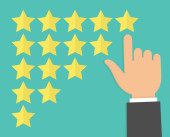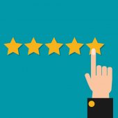 Ręka z palcem wskazującym wskazująca gwiazdy oceny