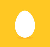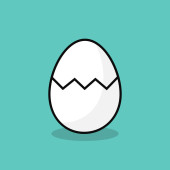 Biała jajko na niebieskim tle prosta płaska ikona.