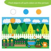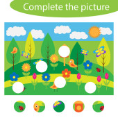 Ukończ zagadkę i znaleźć brakujące części obrazu, ogród zabawa gra edukacyjna dla dzieci, przedszkole aktywności arkusza dla dzieci, zadanie dla rozwoju logicznego myślenia, wektor