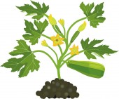 Widok ogólny rośliny cukinii z zielonych liści i systemu korzeniowego