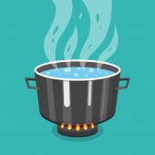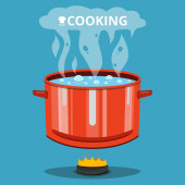 ilustracja wektor wrzącej zupy na patelni