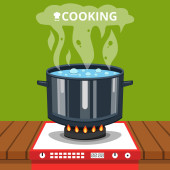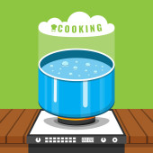 ilustracja wektor wrzącej zupy na patelni