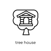 Domek na drzewie ikona na białym tle. prosty element ilustracja z nieruchomości koncepcja ikony. Domek na drzewie projekt symbol znak można edytować logo na białym tle. może być użyty dla sieci web i mobilnych