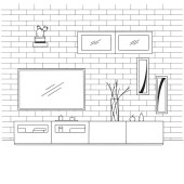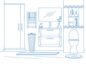 Szkic łazienki. Meble łazienkowe i umywalka.