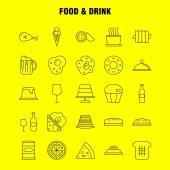 Jedzenie i picie linii zestaw ikon dla infografiki, mobilnych Ux/Ui Kit i projektowania druku. Obejmują: Żywności, restauracja, obiad, zboża, żywności, pszenicy, Bbq, mięso, zestaw ikon - wektor