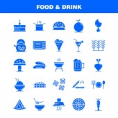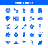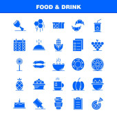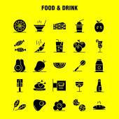 Jedzenie i picie stałe glifów ikony Ustaw dla infografiki, mobilnych Ux/Ui Kit i projektowania druku. Obejmują: Chleb, żywność, bochenek, Ice Cream, krem, jedzenie, zjeść, zestaw ikon - wektor