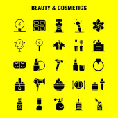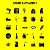 Uroda i kosmetyki ikonę stałe glifów dla sieci Web, drukowanie i mobilnych Ux/Ui Kit. Takich jak: Miska, jedzenie, kuchnia, piękna, kosmetyczne, makijaż, proszek, Puff, piktogram szt. -Wektor