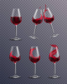Izolowane 3D realistyczny wektor puste i pełne kieliszek do wina na przezroczystym tle z czerwoną plamą dla menu i restauracji list.